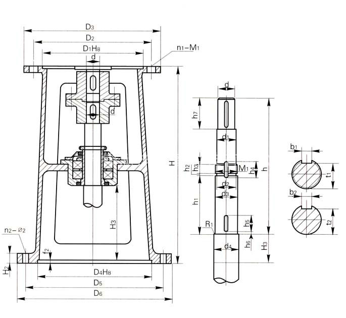 本机架系列的JXLD型适用与XLD型摆线针傫行星减速机联接,JBLD型适用于与BLD型摆线减速机相连接。为使搅拌轴与轴承室装配。维修方便,本公司对轴承室结构进行改进设计。同时对BLD2、BLD3、BLD4与相配的机架JBLD2、JBLD3、JBLD4的轴承室加大。使之与较粗的搅拌轴相一致。
